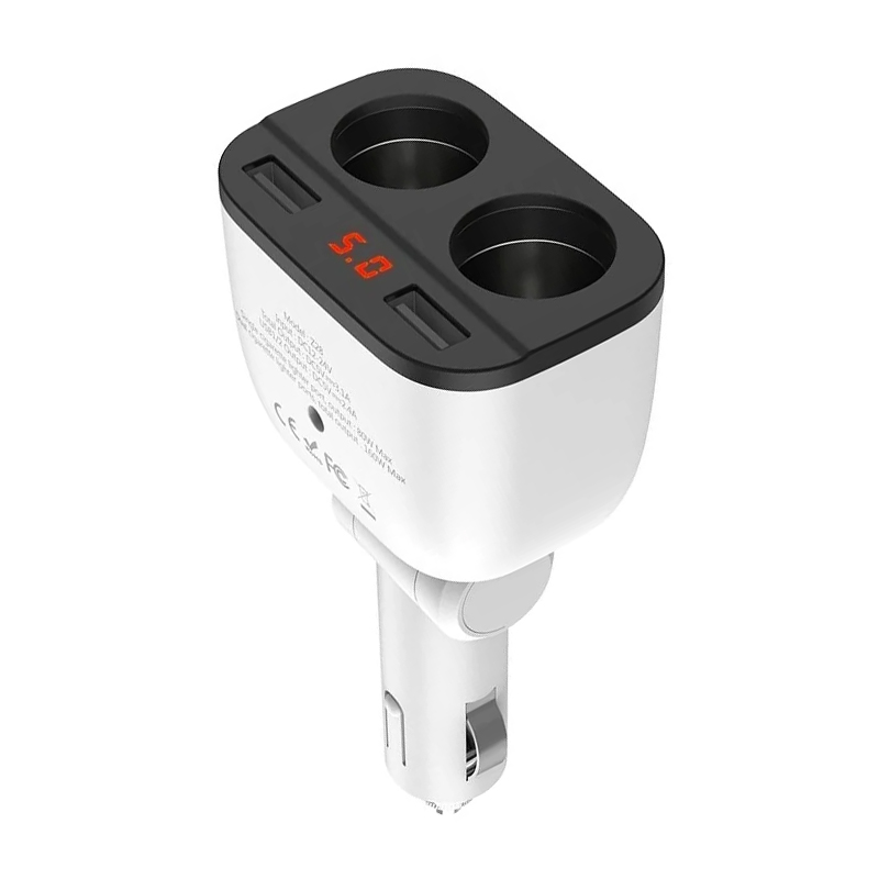 Автомобильное зарядное устройство Hoco Z28+ разветвитель 15 Вт, белый