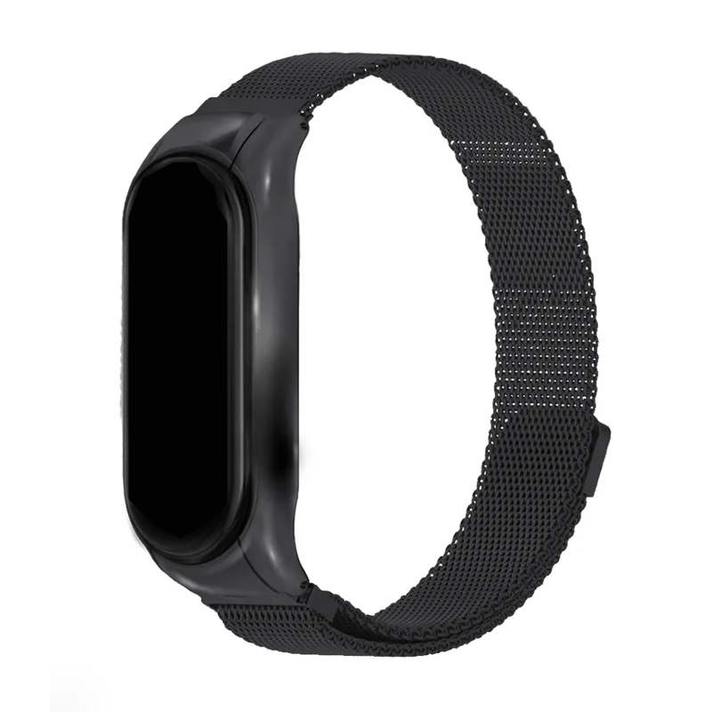 Браслет Миланский сетчатый для Mi Band 5 / 6 сталь чёрный