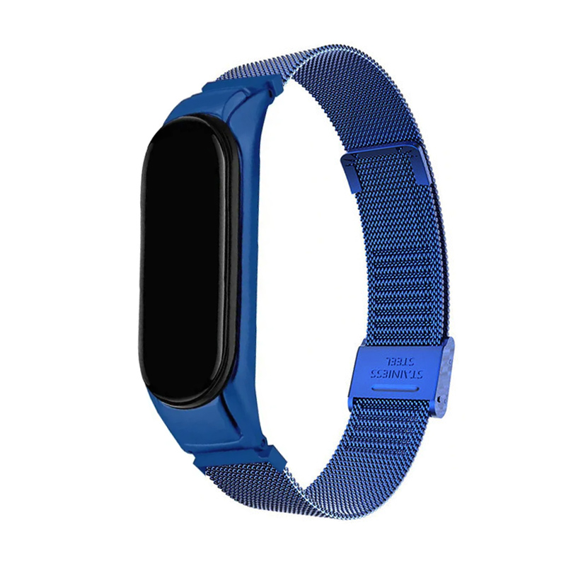 Браслет (застежка) Миланский сетчатый для Mi Band 5 / 6 сталь синий